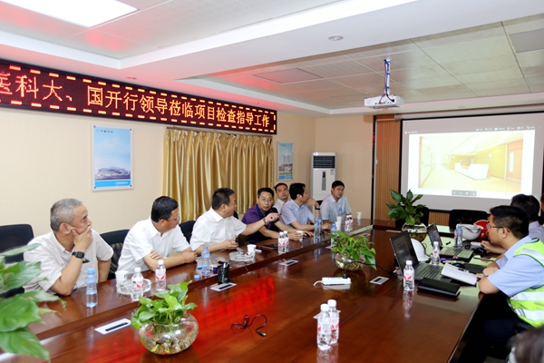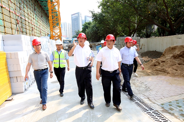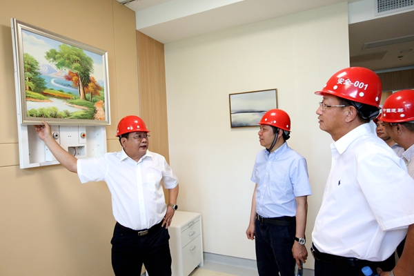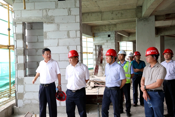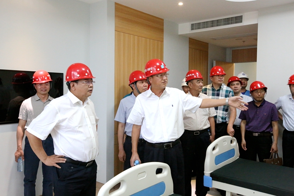 在项目工地,赵劲民校长一行听取了广西开元投资管理有限公司李骥总经理对广西医大开元埌东医院建设进展情况的汇报,并在李骥总经理及项目建设方负责人的陪同下视察了医院的装修样板间,对装修材料和工程进度进行了规划指导。