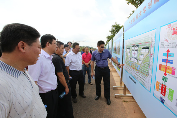 韦力平副主任认真听取校领导及肿瘤医院领导介绍了附属五象新区医院项目的总体规划、推进步骤和存在的问题和困难等情况,现场视察和详细了解了五象新区医院项目周边建设项目及路网规划和建设推进现状。根据自治区党委、政府及南宁市关于全面加快推进五象新区卫生基础设施建设的有关要求和指示精神,韦力平副主任要求南宁市直各部门、良庆区与五象新区医院周边业主单位等要积极建立完善的沟通协调机制,要在规定时间节点,按时推进五象新区医院项目周边的路网建设,支持五象新区医院开工建设做好协助和保障服务。