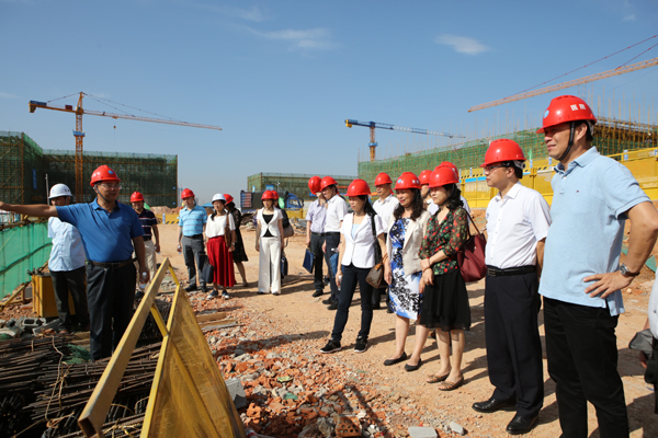 在周诺副校长及口腔医院领导的陪同下,廖品琥主任等一行首先实地考察了在建的东盟国际口腔医学院项目工地,并详细询问了解门诊楼、住院楼、实验楼等工作进展情况。