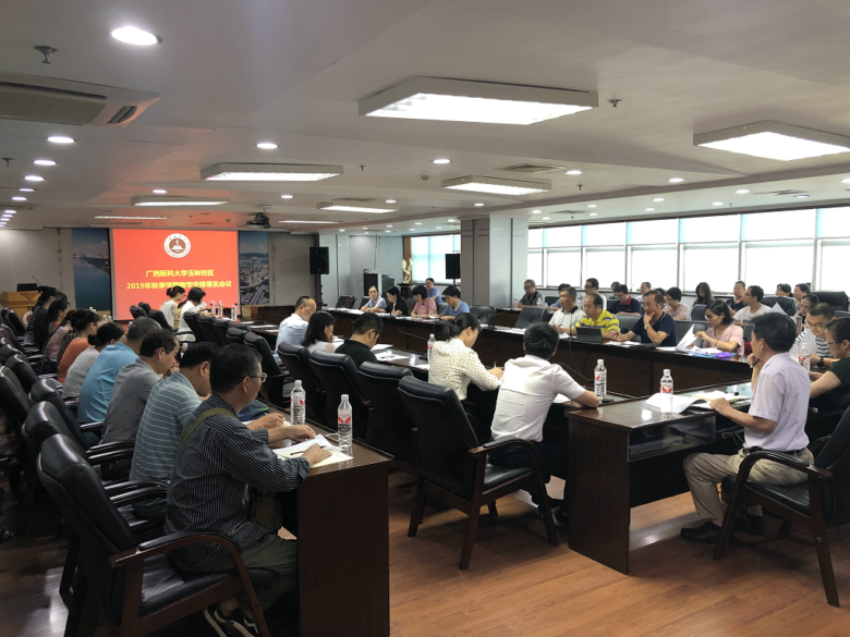 为落实2019年秋季学期玉林校区教学安排各项工作,确保新学期教学工作的顺利进行,2019年8月30日下午,在综合楼14楼会议室召开了玉林校区教学工作会议。伍伟锋副校长,教务处、高职院、武装保卫处、玉林校区筹备办公室等职能部门人员,校本部、玉林校区教学管理人员及课程教研室主任近80人参加了会议,会议由教务处潘小炎处长主持。