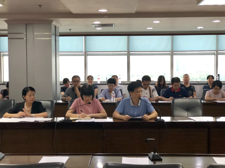 伍伟锋副校长首先强调玉林校区需依法办学,教学质量需与校本部同质化,同时充分调动玉林校区师资,确保教学顺利运行。随后,教务处范丽萍副处长对教学各具体环节提出了要求,各教研室就目前教学安排情况及集体备课计划等工作的现状与困难进行了一一汇报。玉林校区筹备办公室邝晓聪副主任、玉林卫校官英勇校长汇报了玉林校区的建设进展,解答了各教研室的困惑,表示会尽力为教师做好后勤服务工作,全力支持学校教学工作。潘小炎处长指出,教研室工作是教学全过程的落地环节,目前教学安排基本落实,下一步需要对接后勤保障等异地办学问题,大家要发扬主人翁精神,有担当,确保教学工作的有效实施。