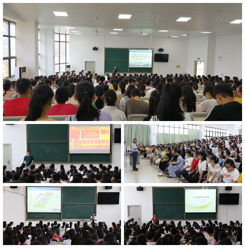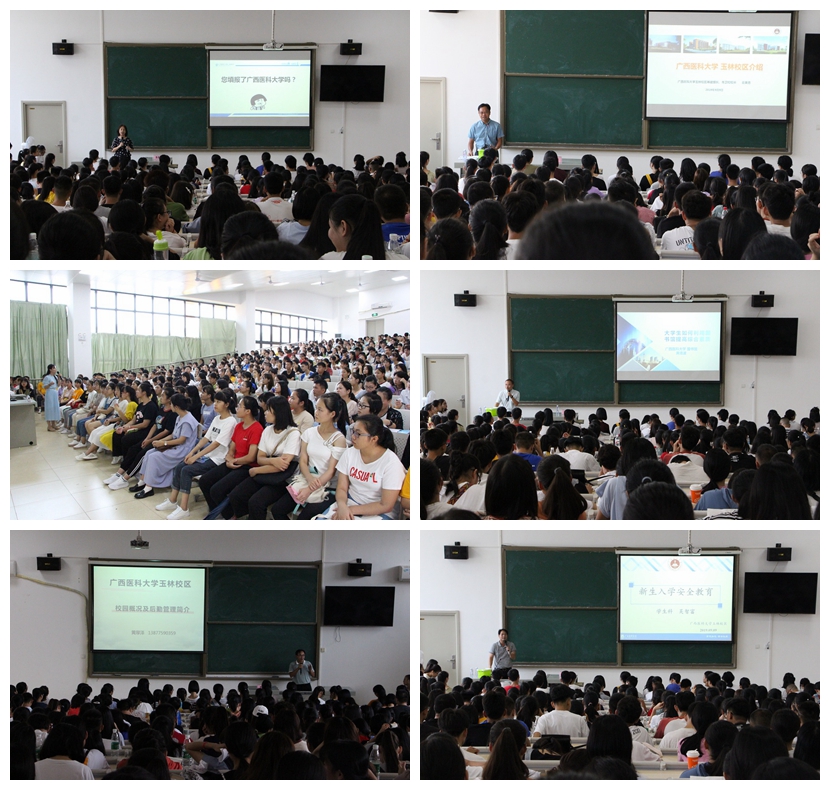 9月9日,玉林校区组织了新生入学教育活动。卿云波副校长以校训为切入点,以爱国主义教育为主题,为2019级新生上了生动的开学第一课。卿副校长向同学们介绍了学校和玉林校区的基本情况、发展历史、取得的成就、各个专业的基本情况和就业情况,勉励同学们从“爱国、爱校、爱家、爱人”四个方面塑造精神品格,完善自己,行有规范,提高自身修养。从“新起点、新变革、新发展”三个方面系统思考人生规划,积极为祖国的医疗卫生事业做出自己的贡献。校本部直属单位党委书记罗桓、教务处常务副处长林军、高职院副院长曾志励和莫税英,以及玉林校区官英勇、李胜发等领导分别从入党知识、专业课程设置、学生管理、图书馆利用、校园管理以及安全保卫等方面做了情况介绍。入学教育还安排了专家讲坛和防艾知识讲座。