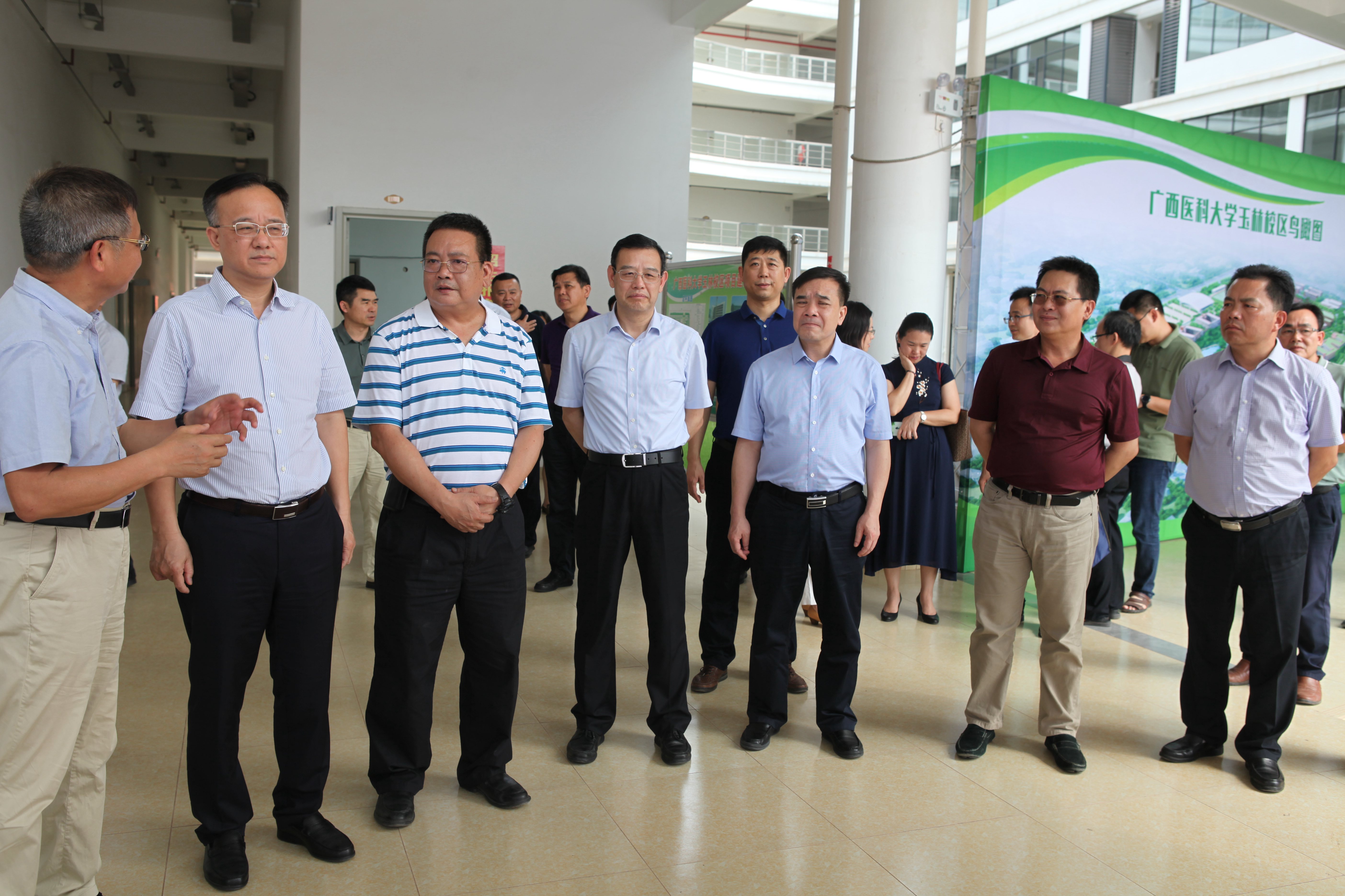 在玉林校区,赵劲民校长向黄副主席汇报了玉林校区今年招生和办学筹备情况,表示要扎实稳步推进办学质量,与玉林市政府充分合作、加强沟通,共同办好人民满意的大学,服务地方医疗卫生事业发展;卫校官英勇校长向黄副主席详细介绍了玉林校区运营的基本情况和校区一、二期建设最新进展。